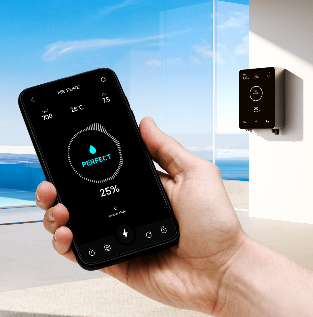 Dzięki technologii INVERTURBO Mr. Pure zapewni Twojemu basenowi wszystko, co dotyczy dobrego samopoczucia w wodzie podczas 4-sezonowego doświadczenia pływania, dzięki automatycznej regulacji inwertera 0%-130%. Niezależnie od tego, czy jest to wstępna dezynfekcja, czy operacja po imprezie, tryb Turbo 130% sprawi, że basen będzie gotowy w mgnieniu oka.