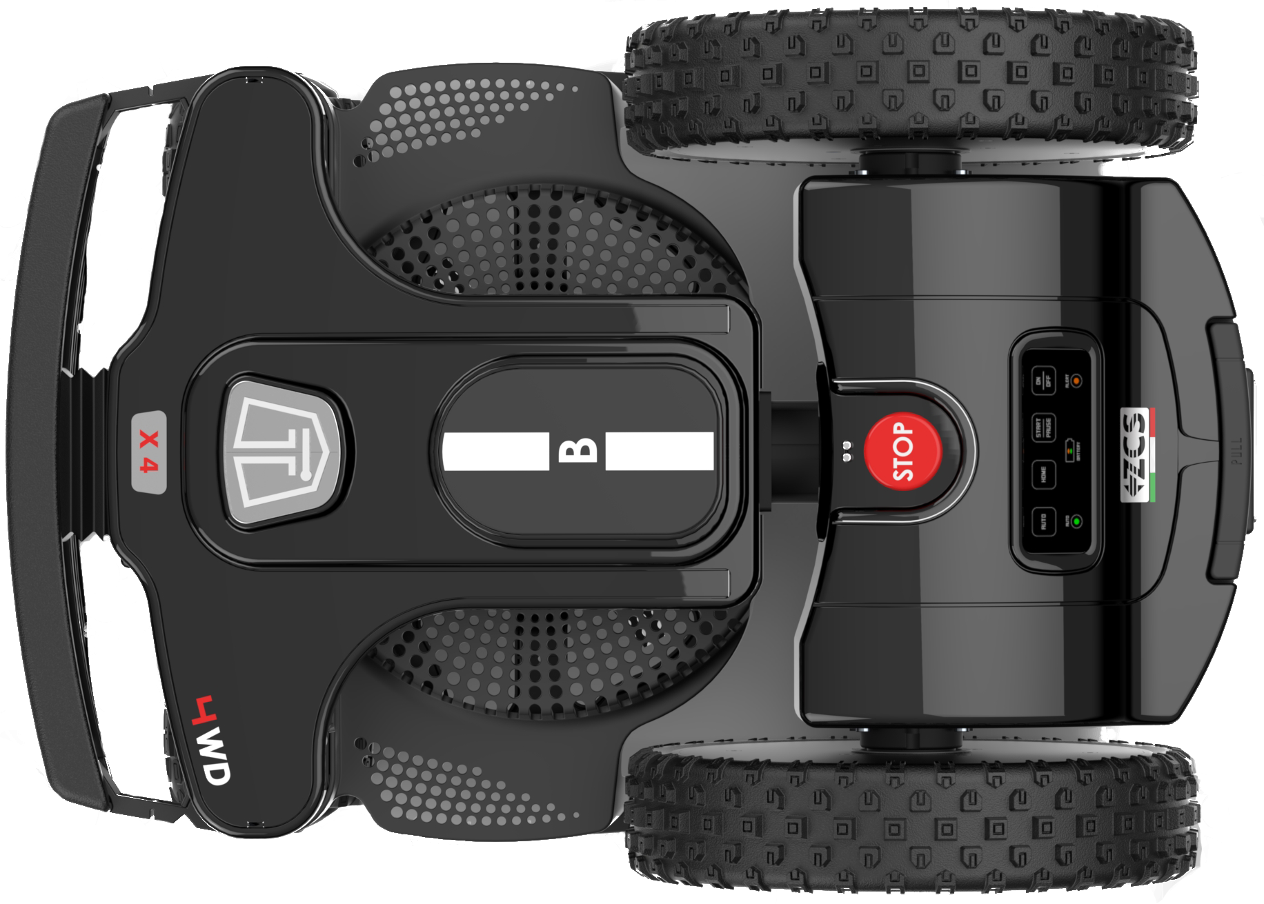 Model D X4 to modułowa wersja robota z napędem na 4 koła i wyświetlaczem dotykowym oraz możliwością rozbudowania go o dodatkowe moduły wspomagające koszenie – zestaw RTK lub SDM (Connect). Wydajność robota zwiększa się proporcjonalnie w zależności od wybranej opcji: